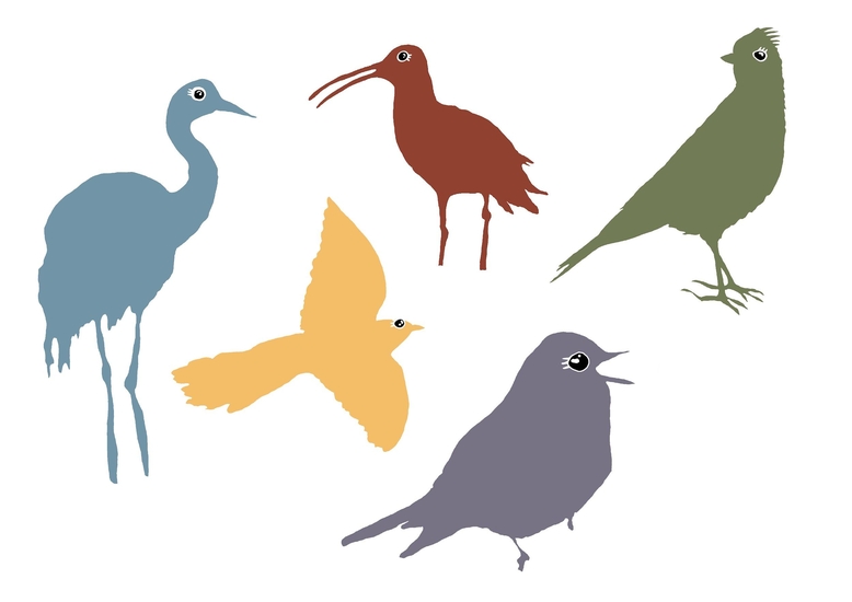Lintujen värimaailmassa on kunnioitettu rakennuksen omaa väritystä, luoden näin kokonaisuudesta harmonisen ja yhtenäisen. Värit ovat: punainen, keltainen, violetti, sininen ja vihreä. Teoskokonaisuuden materiaalina on jauhemaalattu alumiini, joka on sään ja korroosion kestävä sekä huoltovapaa.