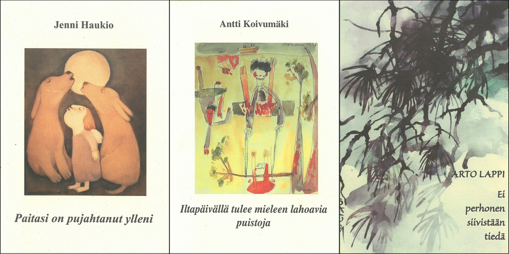 Alla olevissa kuvauksissa kirjailijan osuus on runokirjan lieveteksti.