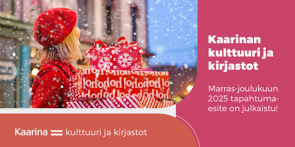 Voit tutustua kulttuuri- ja kirjastopalveluiden tapahtumatarjontaan uudesta esitteestä, jota voit selata täällä: www.kaarina.fi/tapahtumat-marras-joulu-2025 tai käydä nappaamassa esitteen käteesi vaikkapa Kaarina-talosta tai Piikkiön kirjastosta.