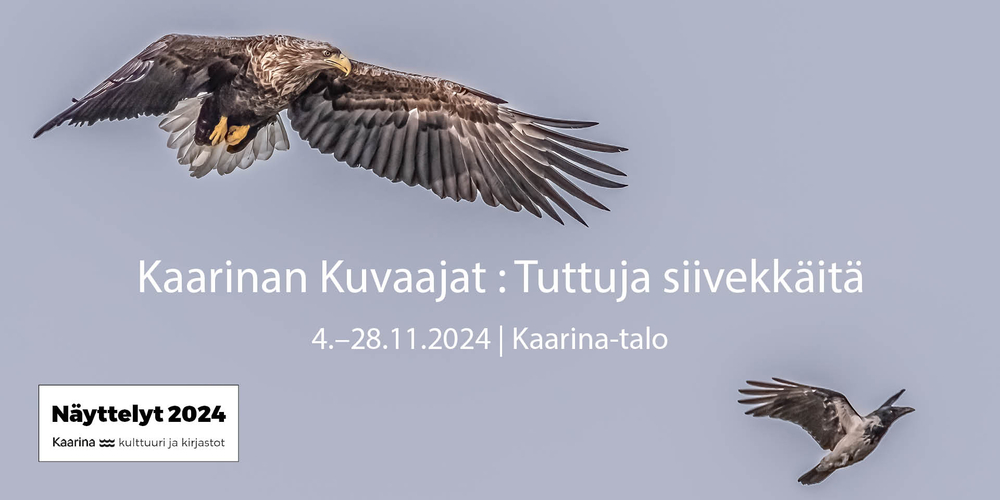Vuosi 2024 on Kaarinan Kuvaajat ry:n 30-vuotisjuhlavuosi. Juhlavuoden kunniaksi järjestettävässä näyttelyssä teemana ovat lintukuvat, sillä luontokuvaus on yksi kuvausharrastuksemme kulmakivi. Luonnossa linnut ovat paitsi kiehtova ja monipuolinen kohde, kuvattavaa riittää aina ja kaikkialla.