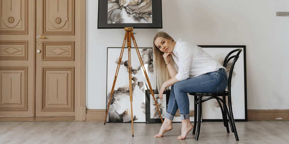 Alkoholimusteissa Petra Suittio rakastui niiden luomiin kontrasteihin, tekstuureihin ja mahdollisuuteen päästää irti suunnitelmallisuudesta. ”Maalatessani annan musteen liikkeen ohjata luomisprosessia - maalaus saa ikään kuin luoda itse itsensä. Voin itse vain nauttia hetkestä,
