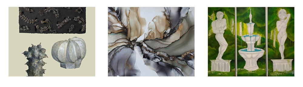 Kaarina-talon ensimmäisen kerroksen näyttelyssä on esillä Pirkko Salovaaran maalauksia sekä Miikka Hirsimäen ja Seija Väyrysen veistoksia, joiden materiaalina on patinoitu savi. Teosten lähtökohdat ovat koetussa ja eletyssä, saaden niin abstrakteja kuin tunnistettaviakin muotoja - vuoropuhelua näkymättömän ja näkyvän välillä. Ajatusten vapaata harhailua, sirpaleita pitkältä aikajanalta; havaintoja ympäröivästä maailmasta taiteen keinoin.