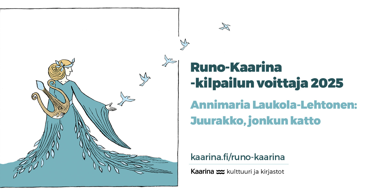 Valtakunnallisen Runo-Kaarina-esikoiskokoelmakilpailun voittaja on Annimaria Laukola-Lehtonen kokoelmalla Juurakko, jonkun katto.