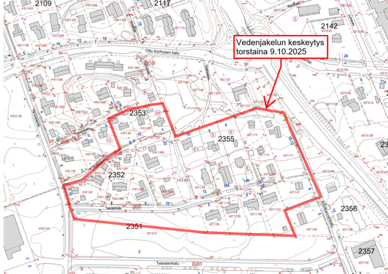 Kaarinan kaupungin Vesihuoltolaitos ja Finaco Oy/Rakenneverkko Oy tekevät Kalttassuon saneerauksen yhteydessä vesihuollon liitostöitä torstaina 9.10.2025. Työt aiheuttavat vedenjakelun keskeytyksen arviolta klo 09.00–16.00 alla olevaan karttaan merkityllä alueella.