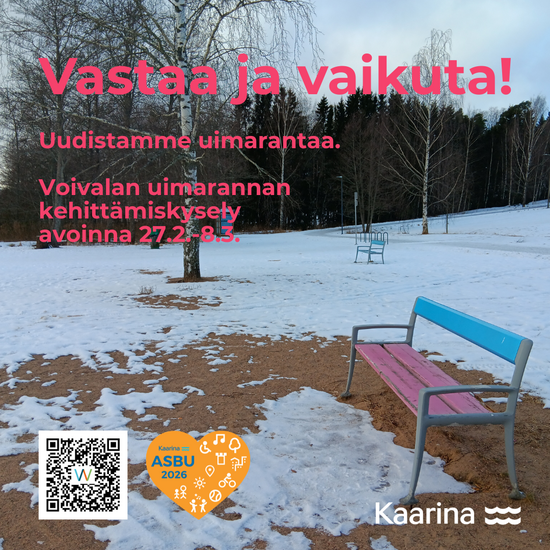 Kaarinan kaupunki toivoo mahdollisimman monen alueen asukkaan osallistuvan kyselyyn, jotta Voivalan uimarannasta saadaan viihtyisä ja käyttäjien tarpeita vastaava virkistysalue.