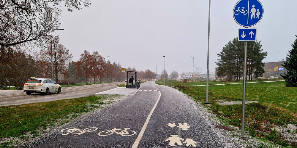 Koulumestarinkadulla on myös eroteltu kulkumuodoille omat kaistat. Pyöräilijät kulkevat ajoradan puoleisessa reunassa ja kävelijät omalla puolellaan. Väylän leveyteen on panostettu ja keskustan sekä Valkeavuoren kampuksen suuntaan onkin nyt hyvä kävellä ja pyöräillä Koulumestarinkadun kautta.